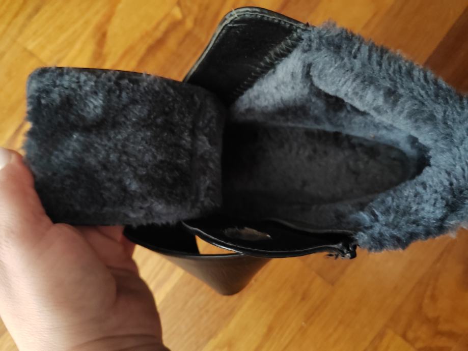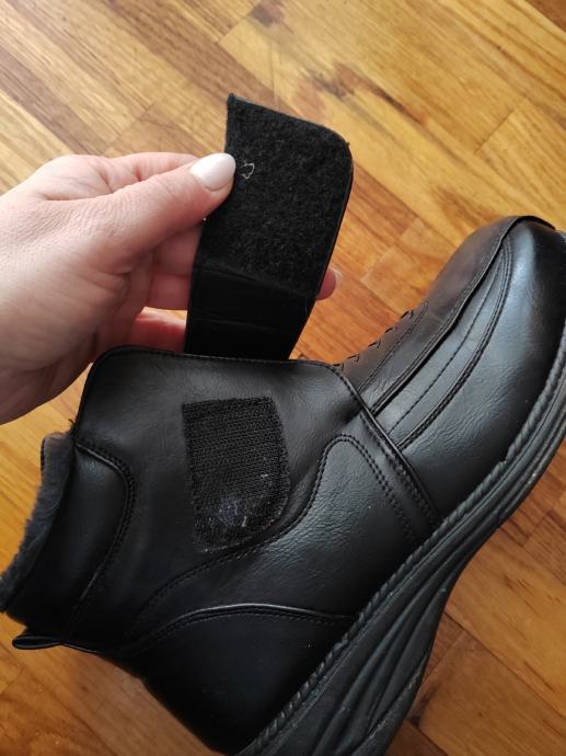 Prodajem ženske pretople čizmice u crnoj boji, veličina 40. Izrađene su od umjetne kože s mekanom toplom podstavom unutra. Čizmice su bez pete, udobne za svakodnevno nošenje. Zatvaraju se na čičak traku i patentni zatvarač što ih čini praktičnima. Debeli protuklizni đon pruža dobru stabilnost.
