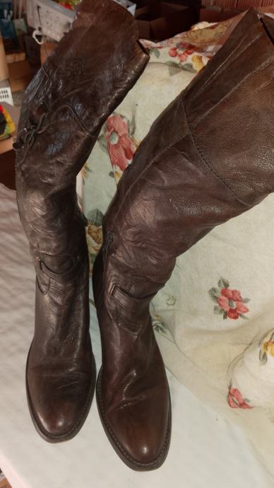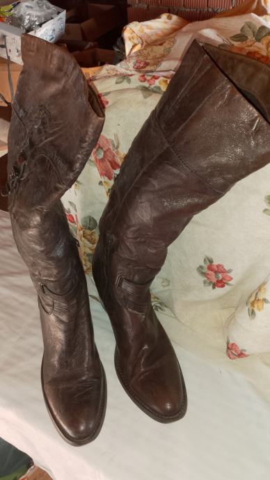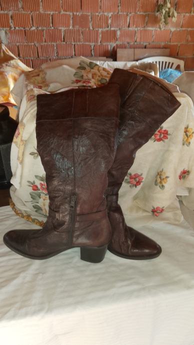 Čizme visoke, smeđe,koža