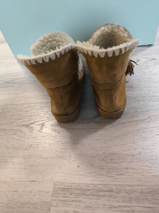 Kopija Mou čizmica. Čizme su punjene umjetnim krznom, tako da su idealne za zimu. Imaju predivan bijeli vez i mogu se prilagoditi nozi, tako što se suze ili prošire kožnim vezicama.