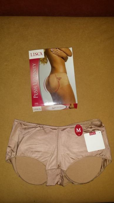 Push up gaćice s diskretnim pjenastim jastučićima, naglase stražnjicu, čine je punijom, zaobljenijom i poželjnijom. U trenutku stvore zavodljive obline, neprimjetne su pod odjećom, a učinak će sigurno biti zamijećen. Gaćice su dobivene, nikad nošene, zapakirane s etiketom. Veličina M, no pošto su rastezljive veličina seže od S-L. U diskretnoj capucchino boji.