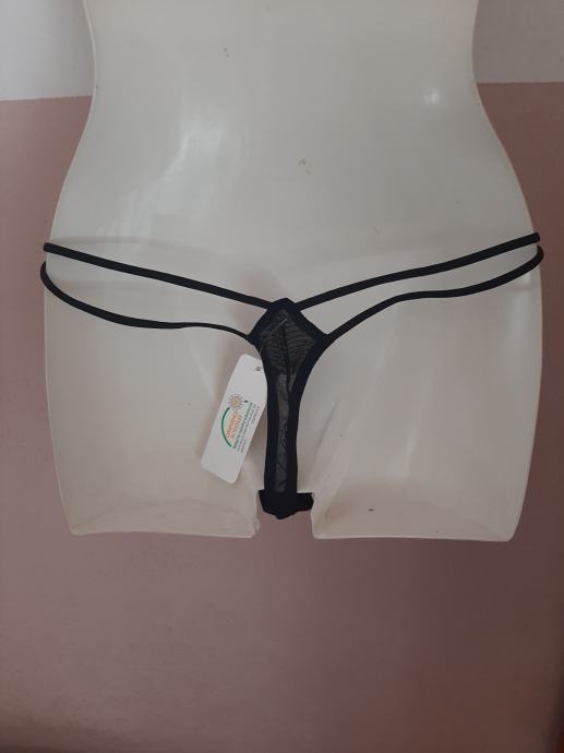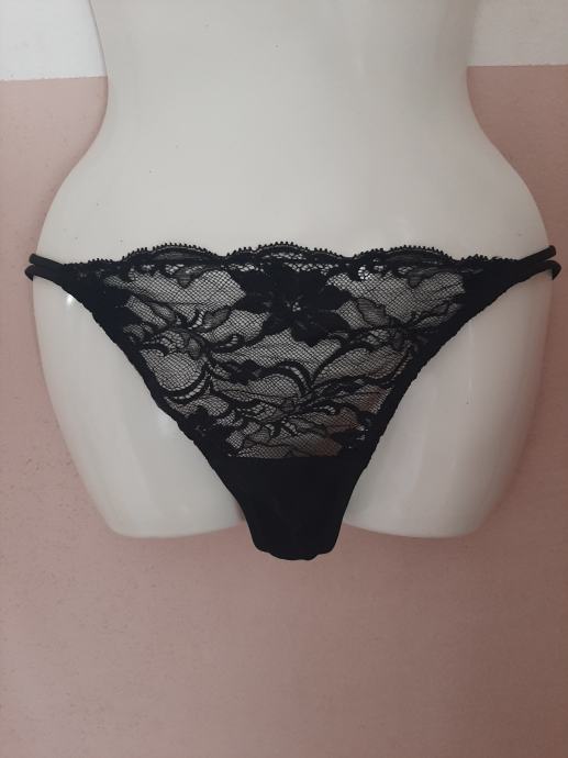 Nove crne tange s etiketom. Čipka. Vel. 36