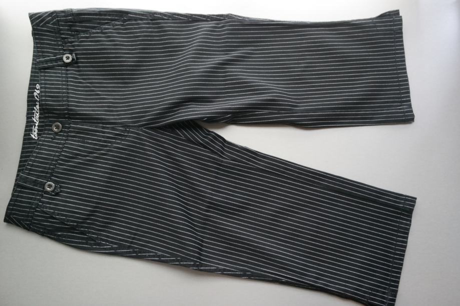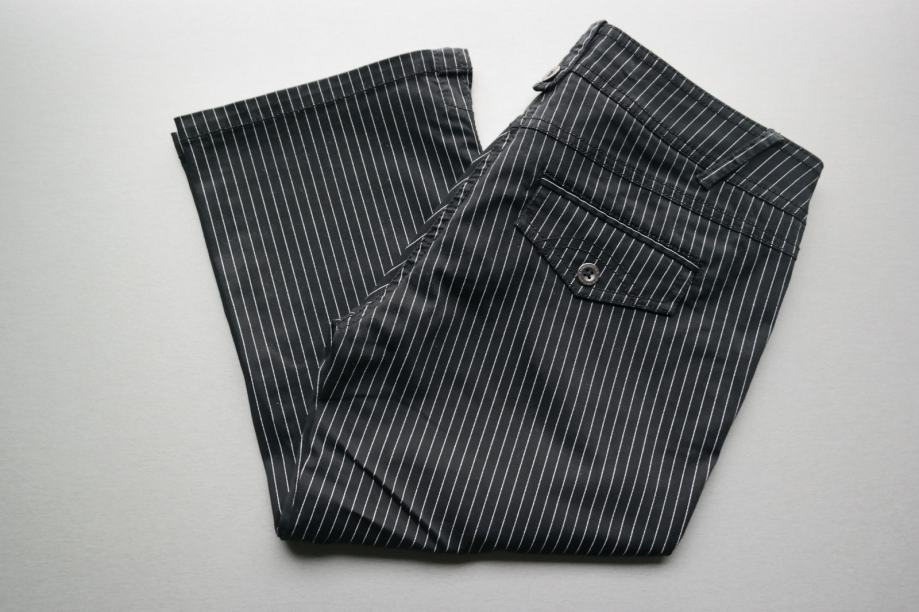 Crne capri hlače na bijele pruge, duljina malo ispod koljena, Tom Tailor, veličina 34, par puta nošene, kao nove