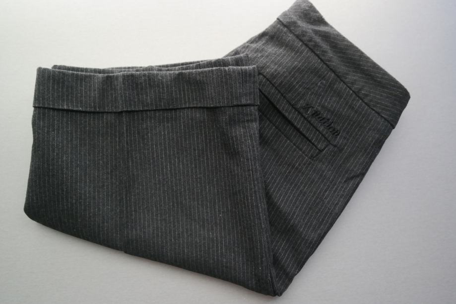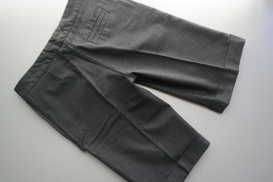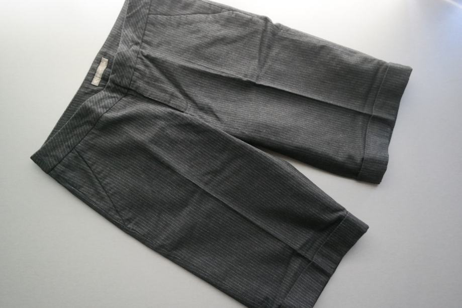 Ženske kratke hlače, bermude duljine do koljena, X-nation, za sezonu jesen/zima, tamnosive s tankim bijelim prugicama, veličina 34 ali komotniji model, par puta nošene, pamuk 100%
