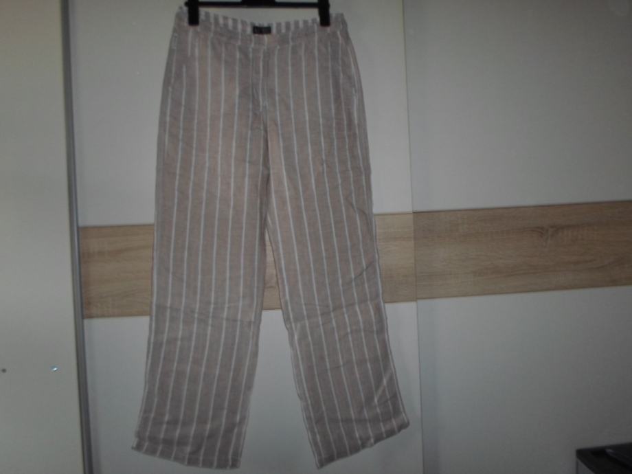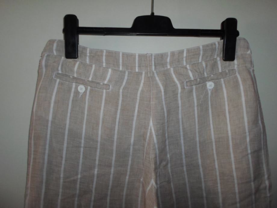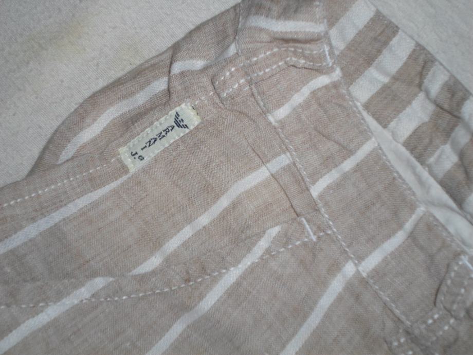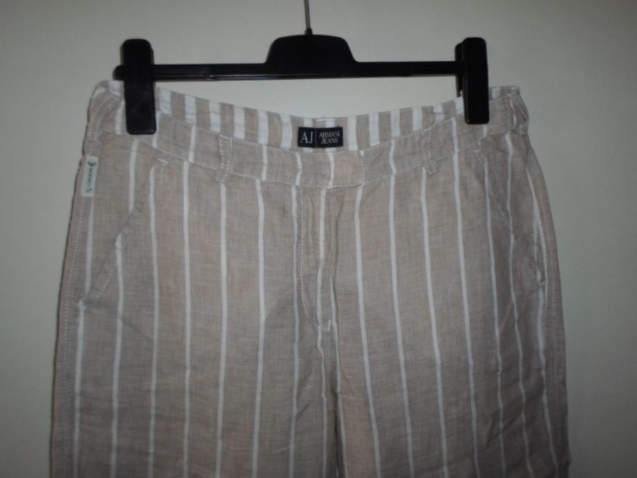 Armani original hlače od kvalitetnog lana u kombinaciji bež i bijele boje.