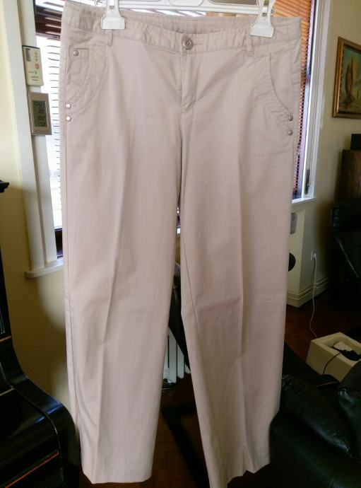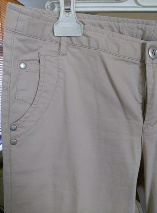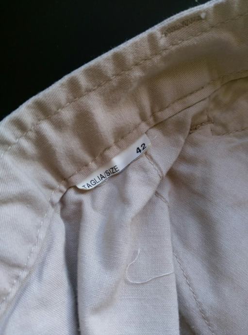 Prodajem nove Benetton hlače, pamučne, bež boje, vel. talijanski 42 (naš38). Obujam pasice 84cm, duljina od pasice do dna nogavica 97 cm, bokovi 46cm.