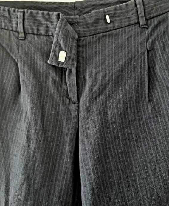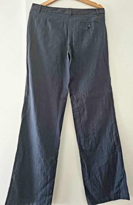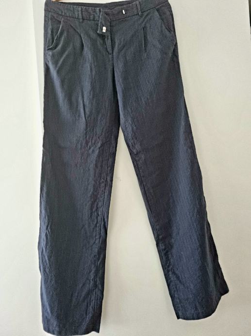 Tamno plave lanene hlače. Imaju jedva vidljive svjetlije okomite prugice. Veličina 44 (170 cm). Nikad nošene, samo oprane.