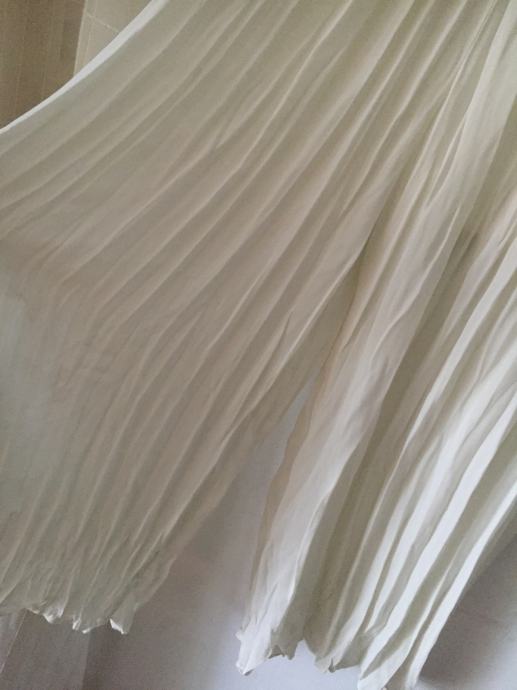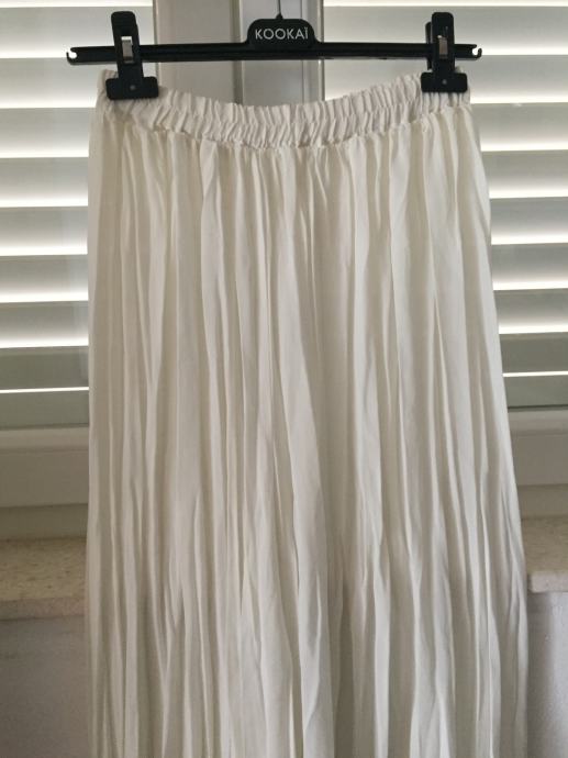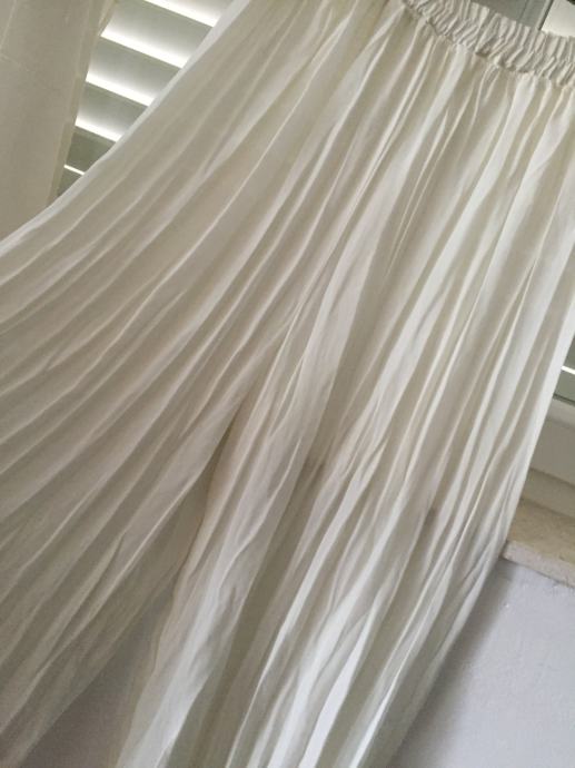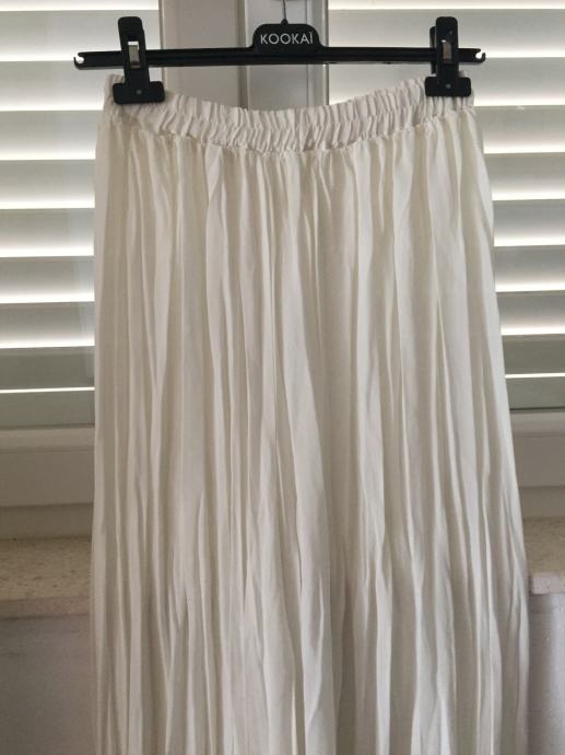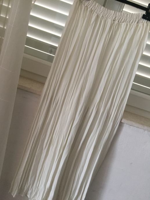 Bijele efektne plise coulotte šifon hlače..fluidne,lijepo padaju,ne gužvaju se..lastik remen...odgovaraju vel.M/L/XL..nenošene!