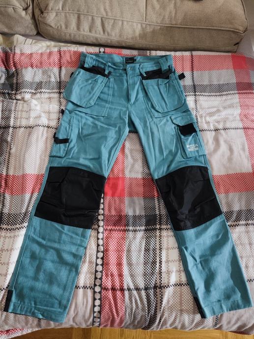 Prodajem nove ženske radne hlače kupljene u Švedskoj. Hlače su izrađene od otpornog pamuka, imaju metalni YKK patent zatvarač i sastoje se od prednja dva džepa, dva džepa za čavle s nekoliko pretinaca, džep za mobilni telefon, dvije ručke za čekić, dva stražnja džepa, džep na preklopni metar i dva džepa na nogavicama s više pretinaca. Pojačani šavovi i najlonska ojačanja na koljenima, u prednjim džepovima i na stražnjem rubu hlača garantiraju dugotrajnu izdržljivost.