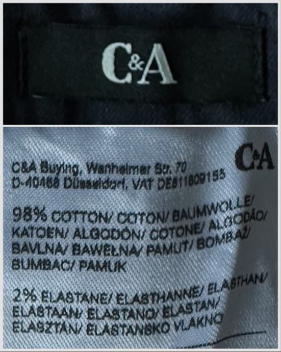 Mjere: struk 42-47 cm, dužina 107 cm, nogavica iz prepona 80 cm, bedro 34-36 cm, gležanj 32 cm.