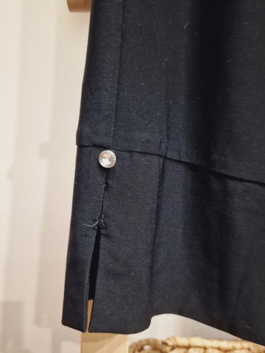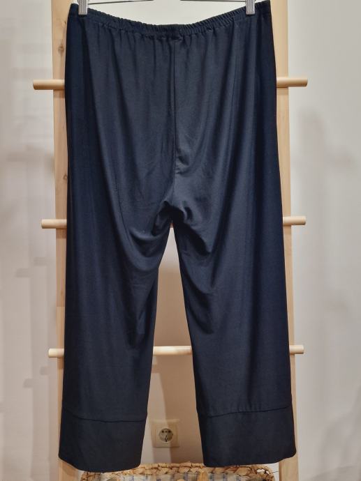 Crne hlače sa detaljem cirkona na nogavici. Nošene i očuvane, na par malih dijelova vire mucice malo, ali to nije primjetno dok se nosi..