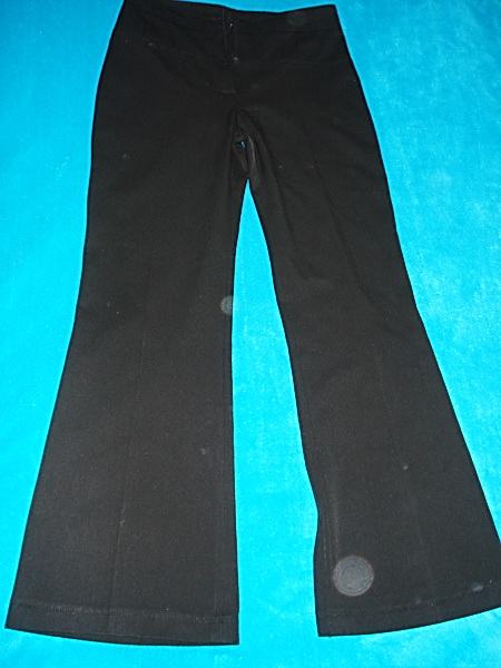 Rrne mekane hlače u trapez, manji M broj. Širina struka: 37 cm, bokova: 46 cm, dužina nogavice: 101cm, dubina prednjice: 23cm. U struku su široke sajmlice za remen.