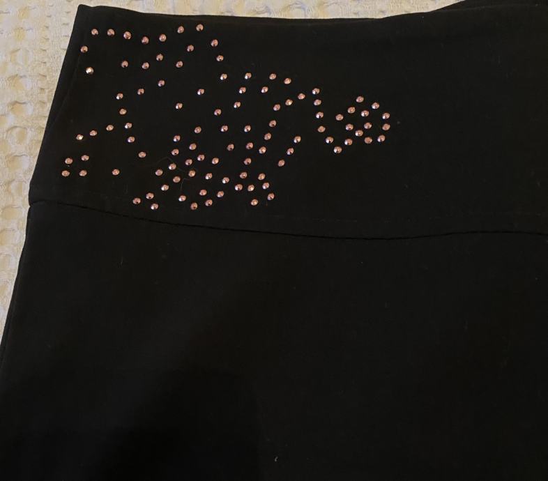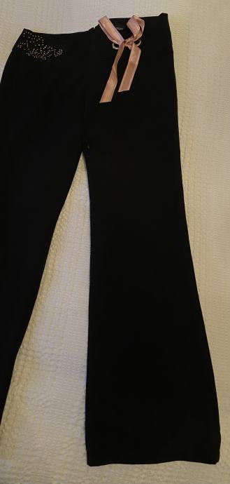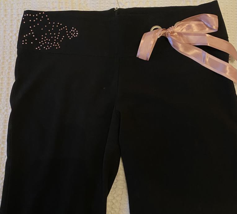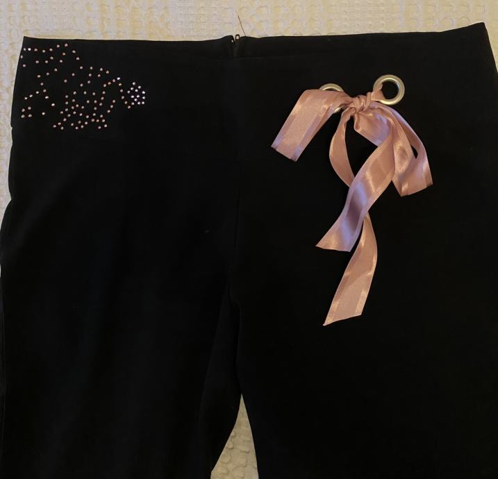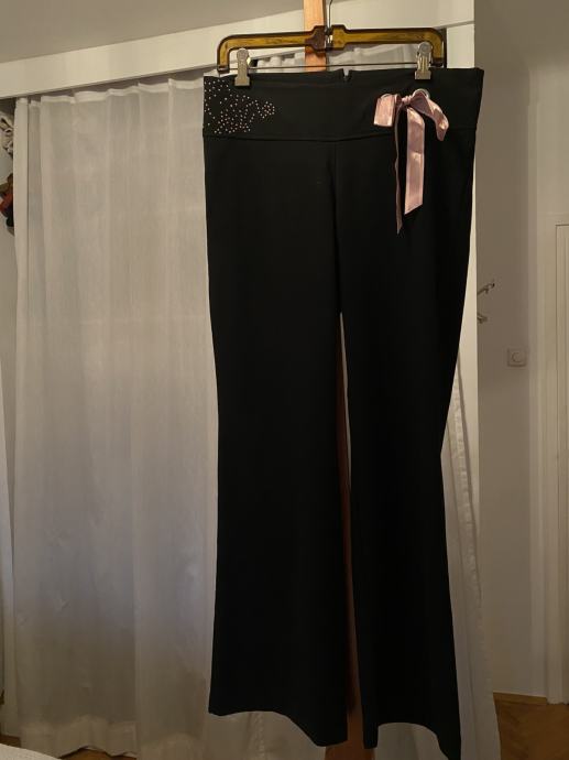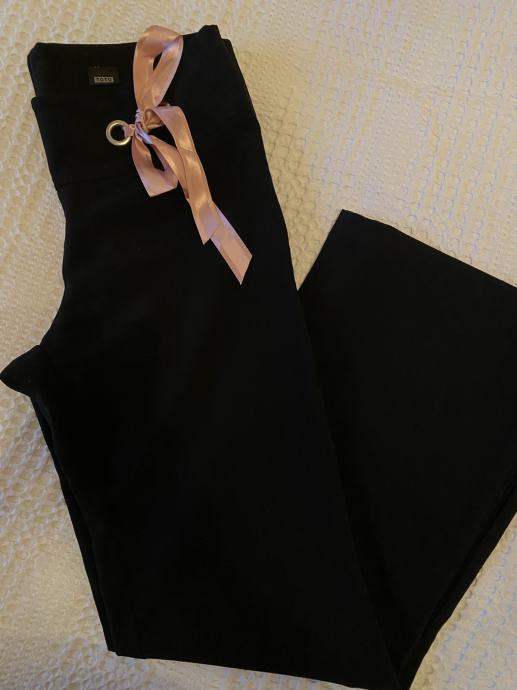 svečane ili dnevne hlaće, ugodne za nošenje ( viskoza punija - mekane jer imaju i elastina) roza mašnica se može skinuti, ili ostaaviti da pojaća efekt istobojnih cirkončiće na drugoj strani. lijepo padaju, a lagani trapez izduljuje figuru uz to što je sada imperativ - lol