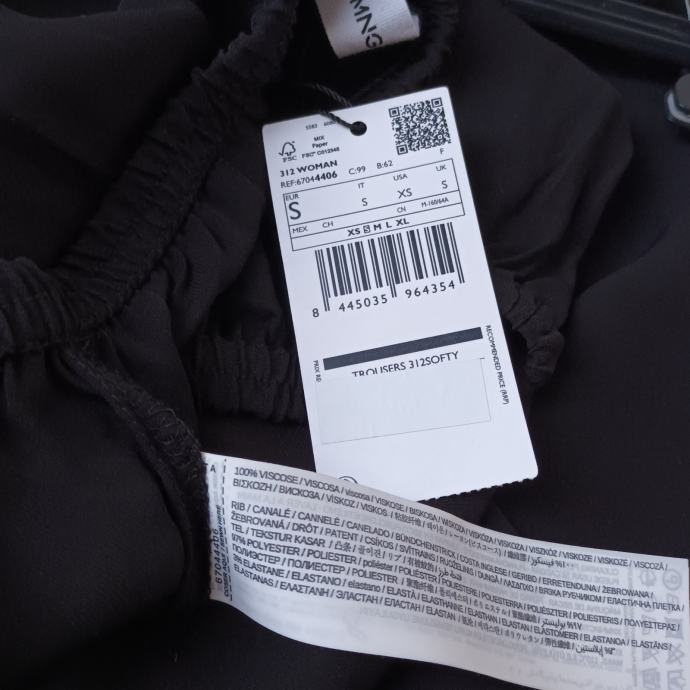 Crne hlače 100% viskoza Mango 36 posve novo s etiketom, lagane kao da nemate ništa na sebi