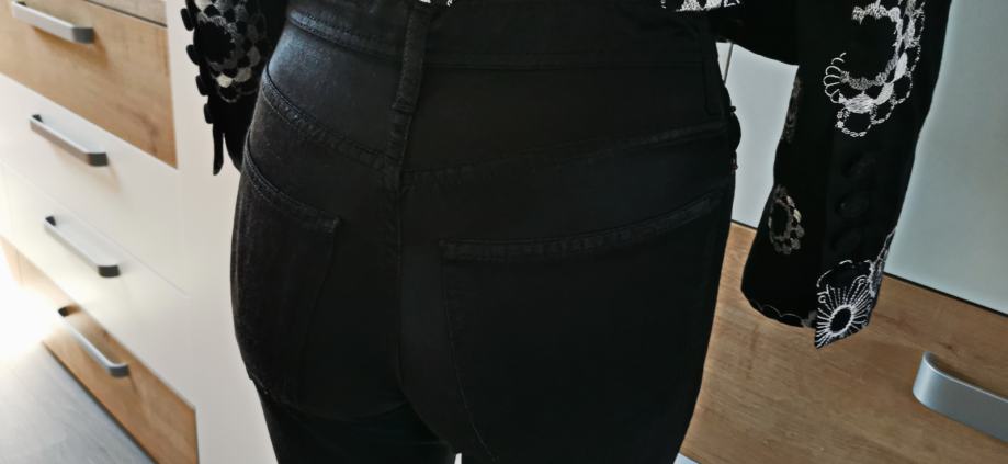 Crne sjajne dugačke hlače broj 36-38 model traperica