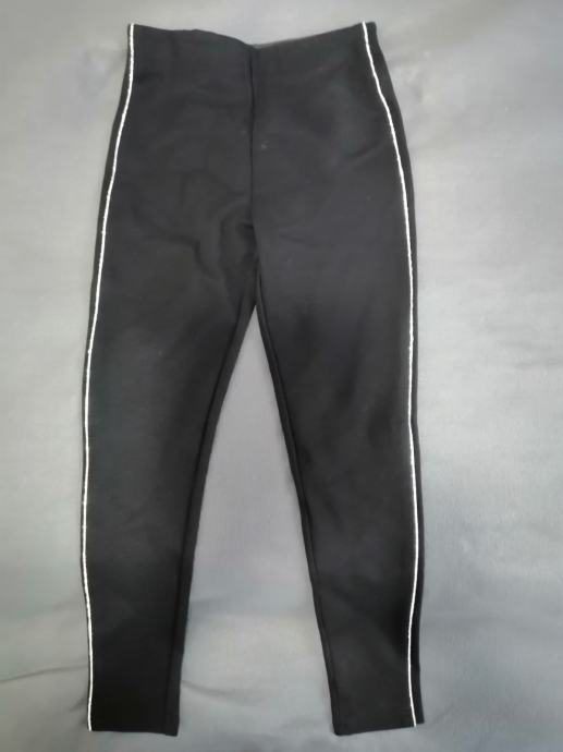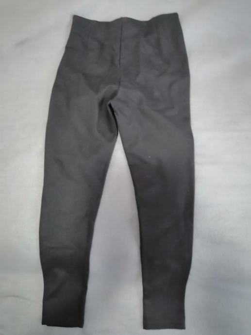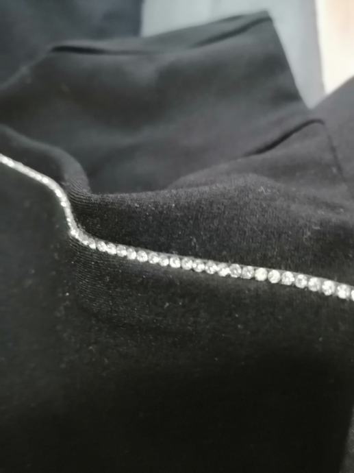 Prodajem jednom obučene hlače/tajice, crne boje, vel. S. Mjere: širina otvora oko struka koji je od gume 32cm (kad se razvuče ide do 42cm), dužina nogavice s unutarnje strane 62cm, a vanjske 90cm, dužina otvora nogavice na dnu je 11cm. Tajice sa strane imaju cirkone. Materijal: 68%viskoza, 27%nailon i 5%elastin.