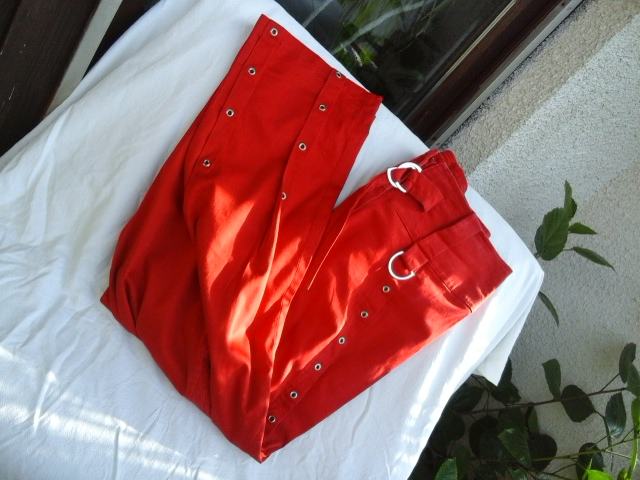 Neobične, jako ugodan, fini tanki pamuk, nove, nenošene, visokog struka, lagane i mekane. Širina struka 40, bokova 46, dubina ispred 30 cm, dužina nogavica iznutra 70, izvana 96, širina nogavica pri rubu 19 cm. Prema dnu se sužavaju, nemaju elastina.