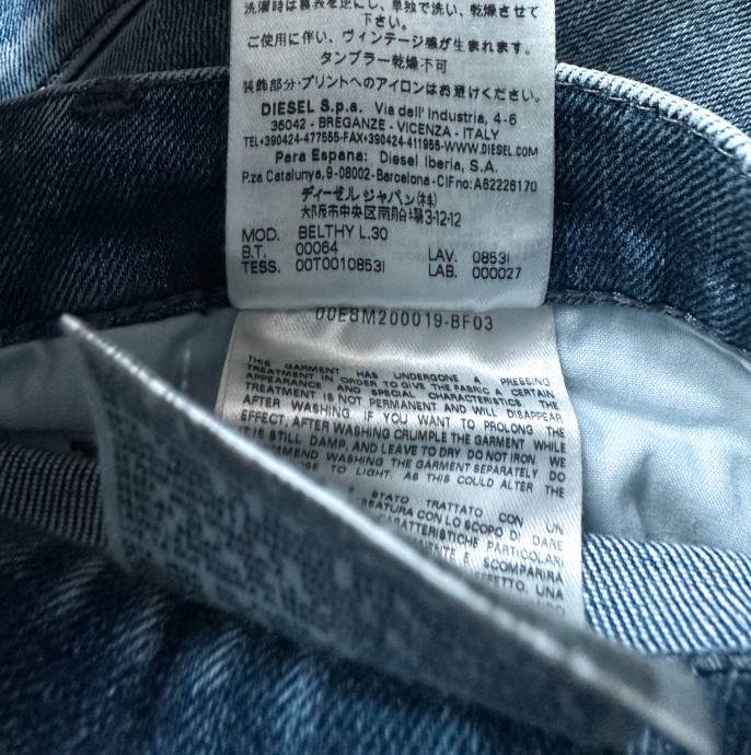 Mjere: struk 40-42 cm, dužina 94 cm, nogavica iz prepona 72 cm.