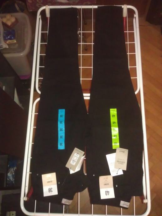Uske (uz nogu kao tajce) ženske crne hlače sa etiketom, br. 40, prodajem (70kn). Sastav: pamuk + elastin.