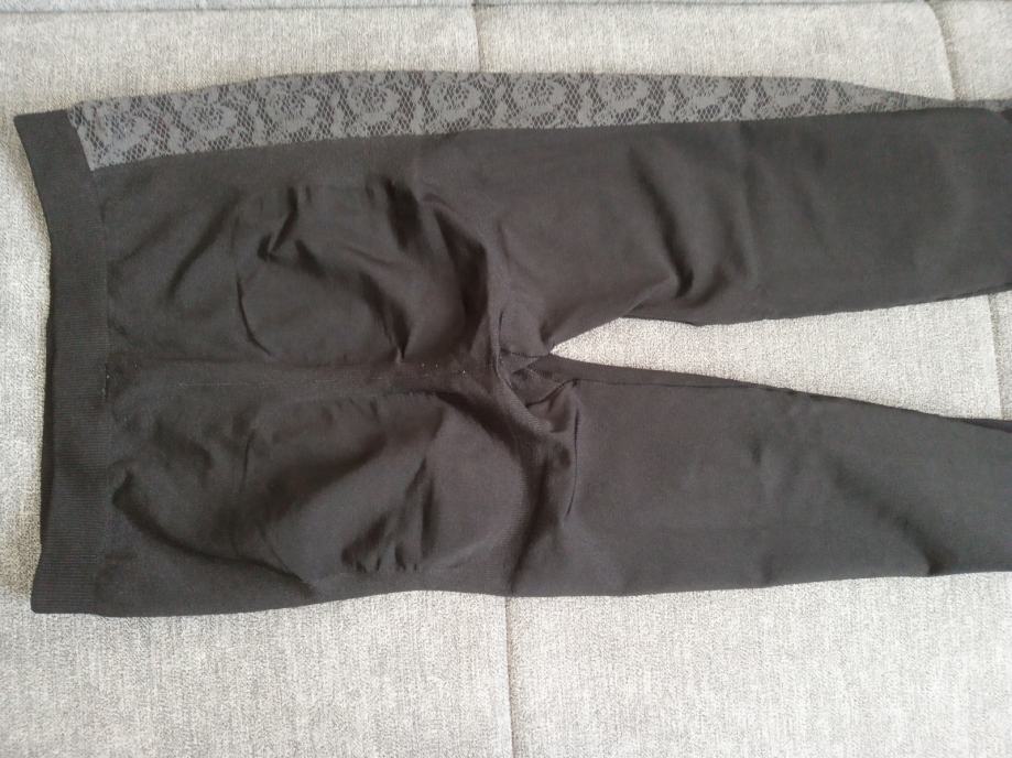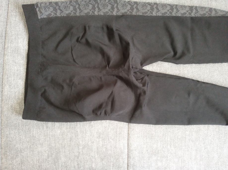 Crne boje sa uzorkom čipke sa obje bočne strane ,pojačanje na stražnjici,vrlo malo nošene 1ili 2 puta,meni mali