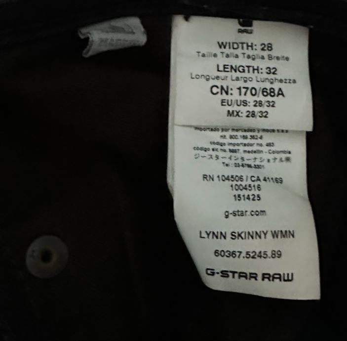 Deklarirano 28/32, mjere: struk 37-43 cm, duzina 106 cm, nogavica iz prepona 83 cm.