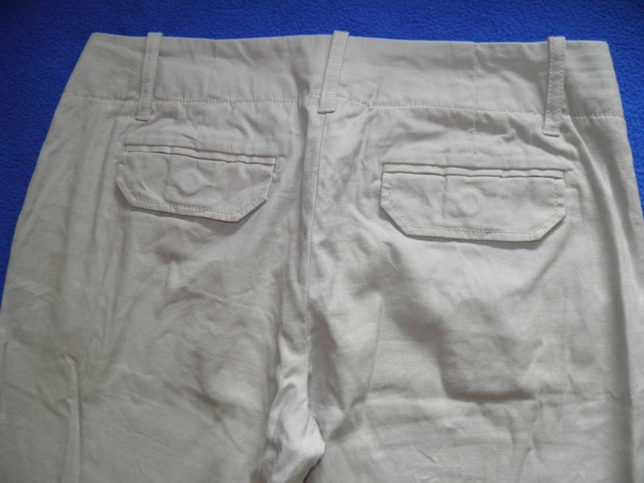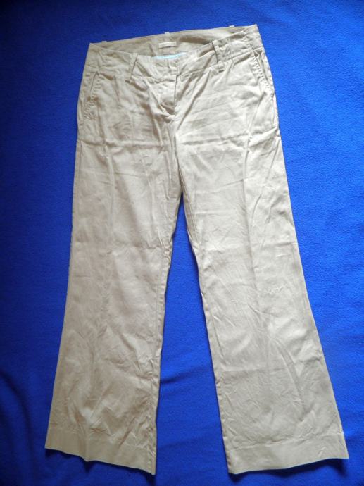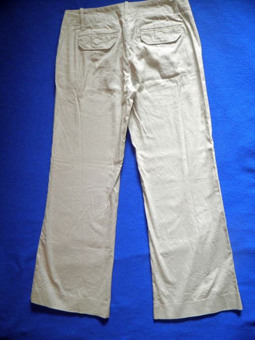 U ODLIČNOM STANJU, LAGANIJE I UDOBNE LJETNE HLAČE, BEŽ BOJE. ŠIRI KROJ. PIŠE VEL. 6 A TO BI BIO NAŠ 38. 58% LAN, 39%PAMUK, 3% ELASTIN. STRUK 38 CM, DUŽINA 98,5 CM.