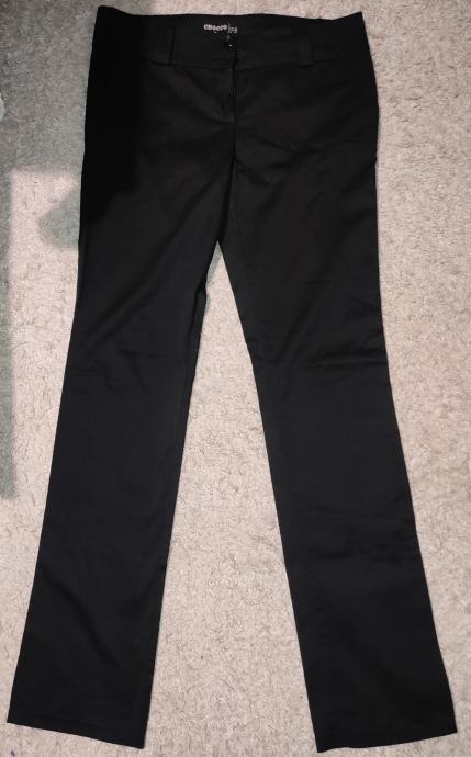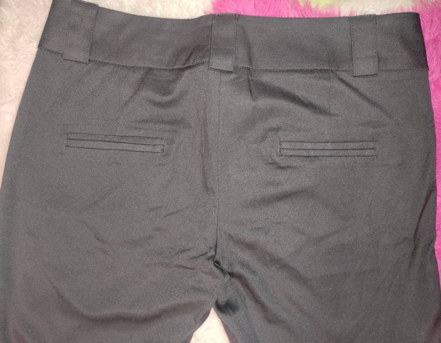 Prodajem ženske crne, finije hlače, veličina 38, nošene 2-3 puta, kao nove i bez ikakvih oštećenja i tragova nošenja. Duljina hlača je 105 cm, struk hlača 60 cm. Pogledajte i moje ostale oglase, nisam za zamjene jer se rješavam viška.