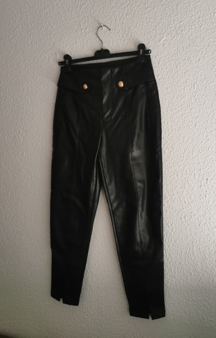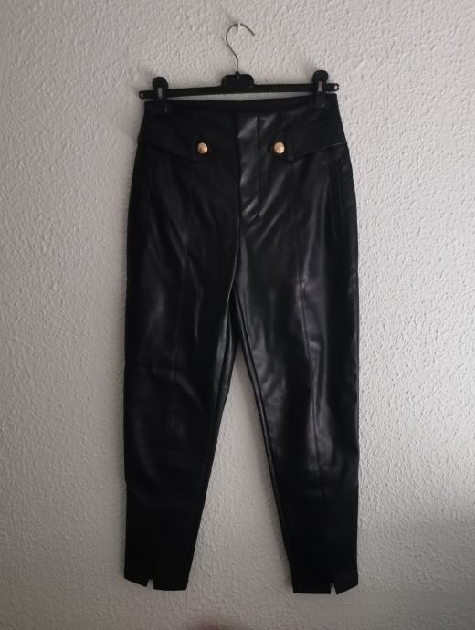 Nove crne kozne hlace sa zlatnim ukrasnim gumbima