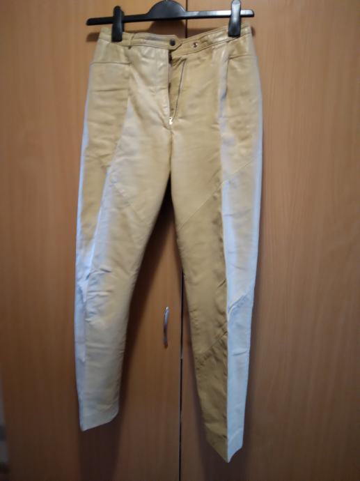 Kožne podstavljene ženske hlače , boje pijeska , malo nošene vel.38