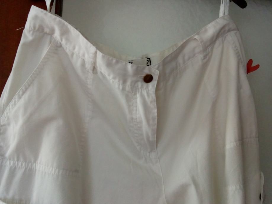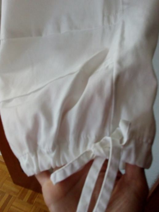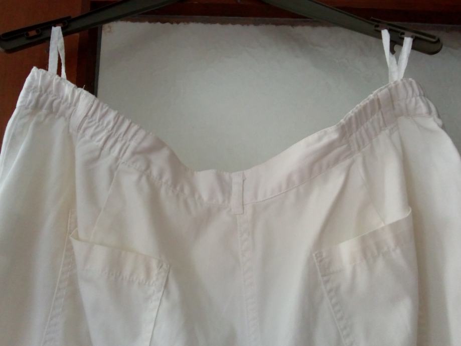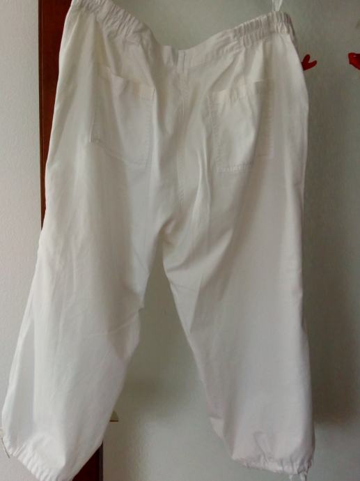 Povoljno prodajem nove lagane bijele 3/4 hlače vrlo tanke i ugodne za nositi. U struku imaju gumu sa strane i dodatne džepove sa strane i pri dnu hlače se mogu suziti ili proširiti kako vam odgovara što se može vidjeti na slikama.