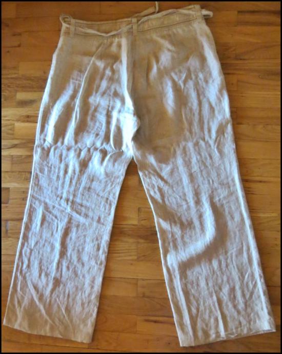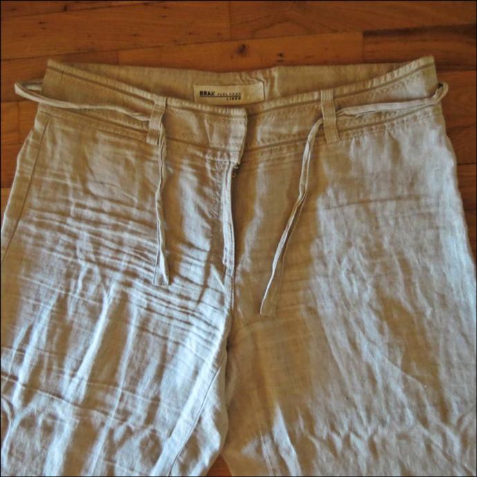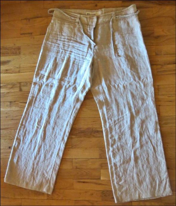Prodajem prekrasne ženske lanene hlače krem boje, nošene su jednom, oprane i stoje u ormaru. Nemaju tragove nošenja niti oštećenja. Veličina: 46