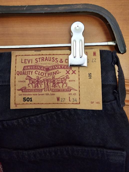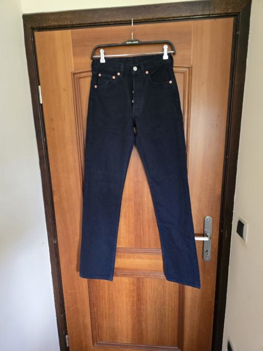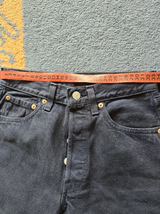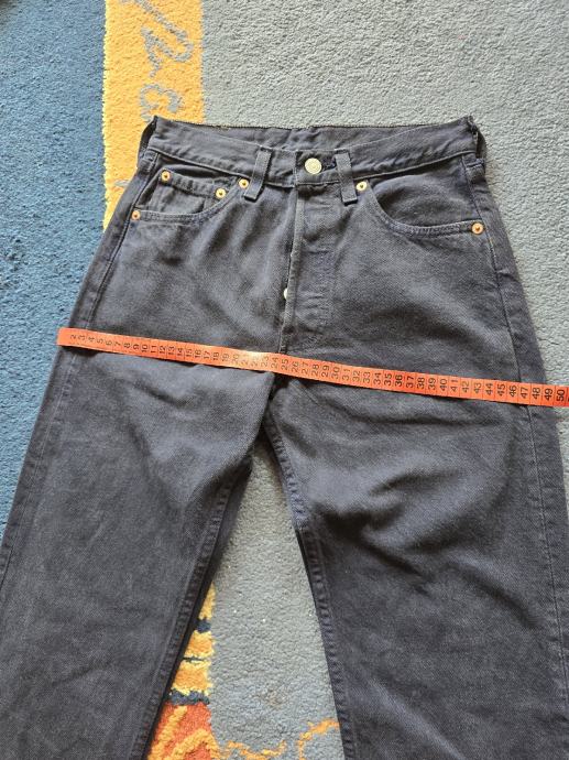 90 vintage Levis 501 jeans USA made, skroz očuvane, W27 L34, ali obzirom da su sve te traperice iz tog razdoblja za broj manje, odgovaraju veličini 26, ali ipak obratite pozornost na mjere i usporedite sa svojima. Potpuno očuvane, boja bi bila neka između crne i tamnoplave. Struk 33cm, bokovi 4ocm, duljina nogavice 112cm, duljina unutarnje nogavice 84cm. 100% pamuk