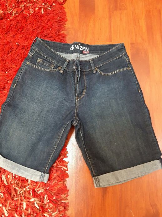 LEVISICE zenske tamnoplave kratke hlače, vel. M. Sirina struka, prednja strana: 36 cm, bokova: 46 cm, dužina nogavice: 43 cm, dubina prednjice: 22 cm. Kao nove.