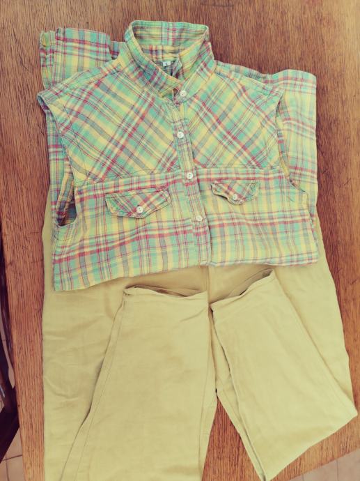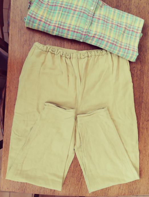Prodajem krasne ljetne hlače ( LIANA MODEN) u boi senfa,, koje se nose uz košulju (L) bez rukava. Hlače su jako široke tako da može nositi i broj 42, a ja ću dati mjere, kako slijedi:
