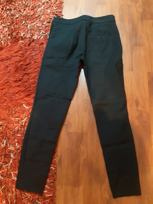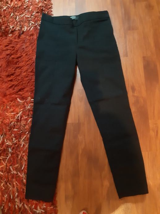 MANGO BASIC crne uske hlace s elastinom, vel.34. Sa strane patent. Sirina struka, sami prednja strana: 38 cm, bokova: 42 cm, dužina nogavice: 90 cm, dubina prednjice: 22 cm.