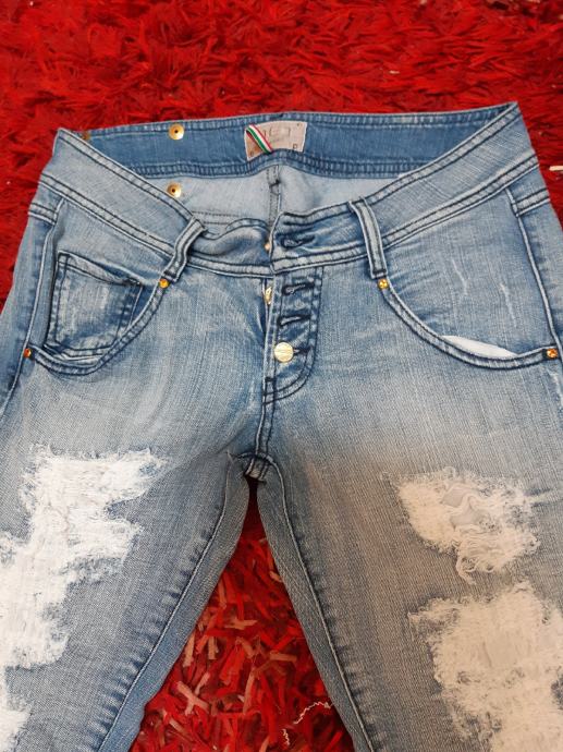 MET zenske traperice s pwrlicama na dnu nogavice, vel. M. Sirina struka, prednja strana: 42 cm, bokova: 48 cm, dužina nogavicw: 97 cm, dubina prednjice: 19 cm.