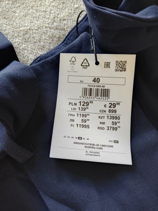 Mohito tamnoplave hlače nove s etiketom pa mogu biti i poklon. Veličina 40. U Zagrebu i Karlovcu moguća je primopredaja. Pogledajte i ostale moje oglase, na više kupljenih stvari popust.