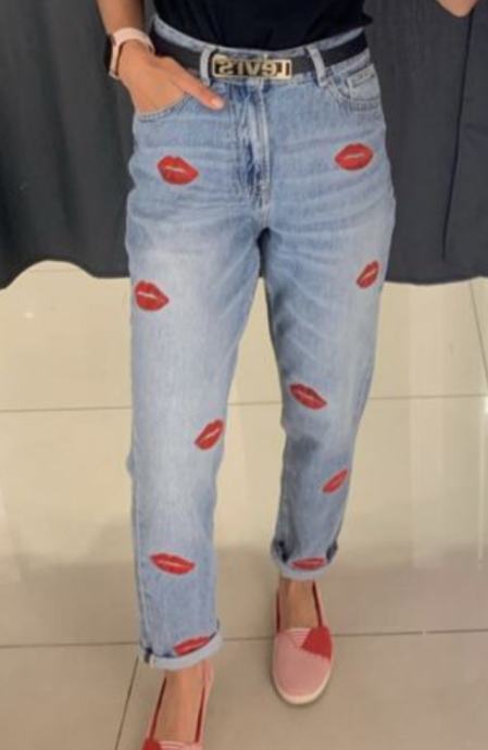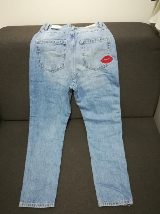 Traperice su od finog i mekanog jeans materijala, veličina je 32 ili XXS, imaju izvezene crvene usne od konca. Razlog prodaje je da su meni male.