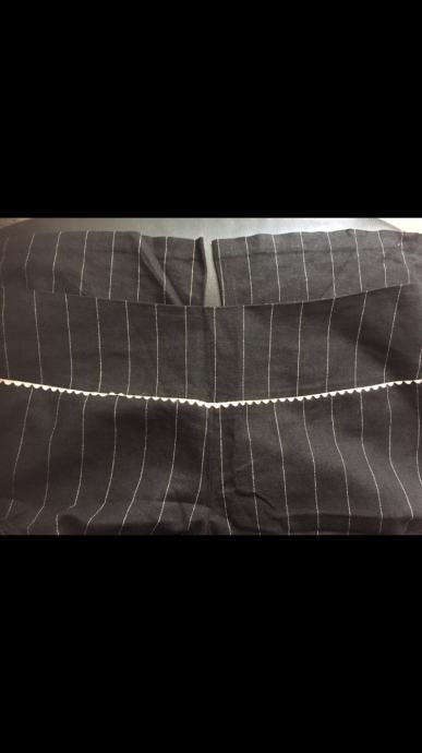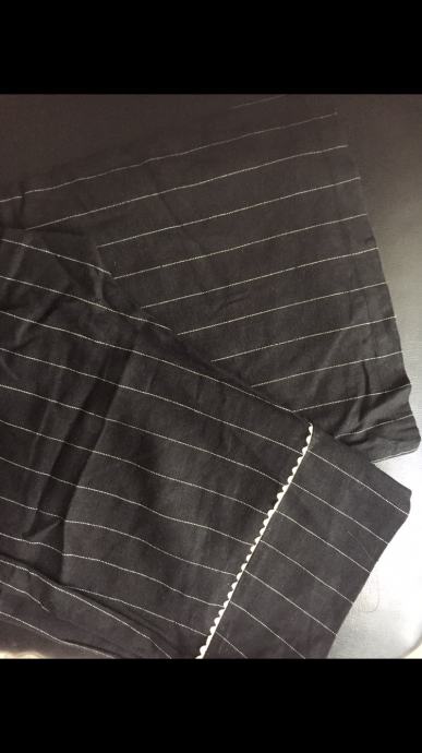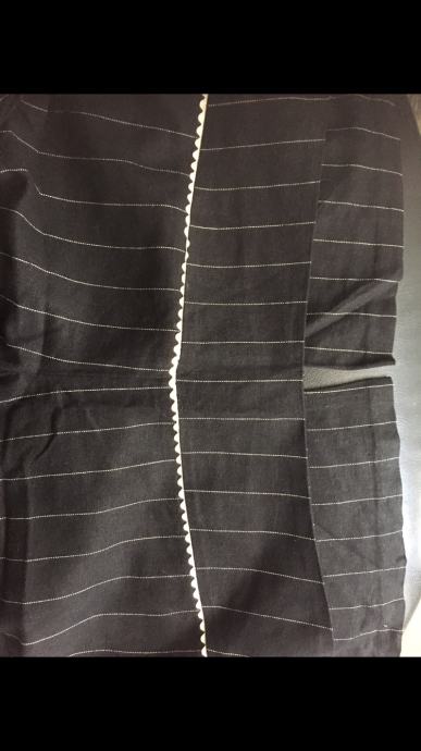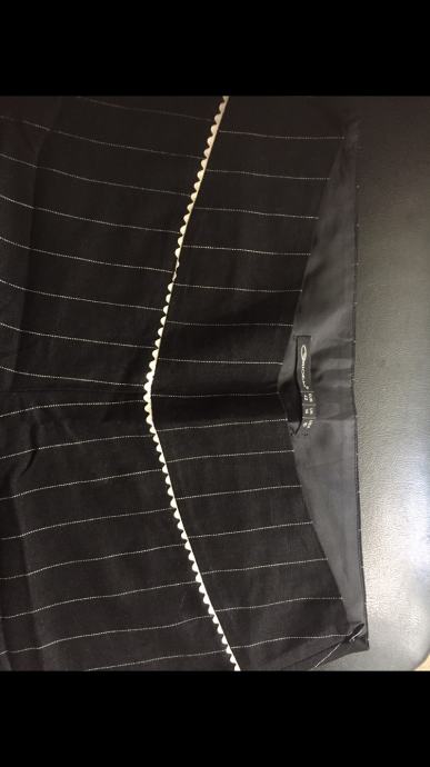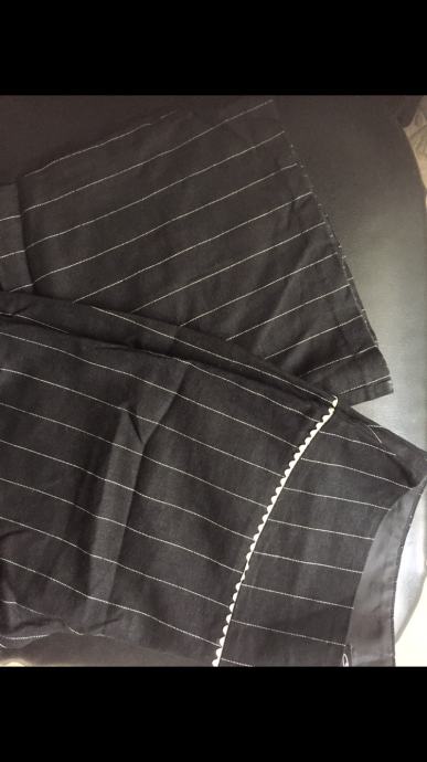 ORIGEM made in Portugal,lanene prugaste crne hlače coulotte style..široke nogavice..ugodan mix lana i viskoze...cif bočno..saten podstava pasice sa ukrasnom vezenom trakom ..vel. 40-42...nenošeno!