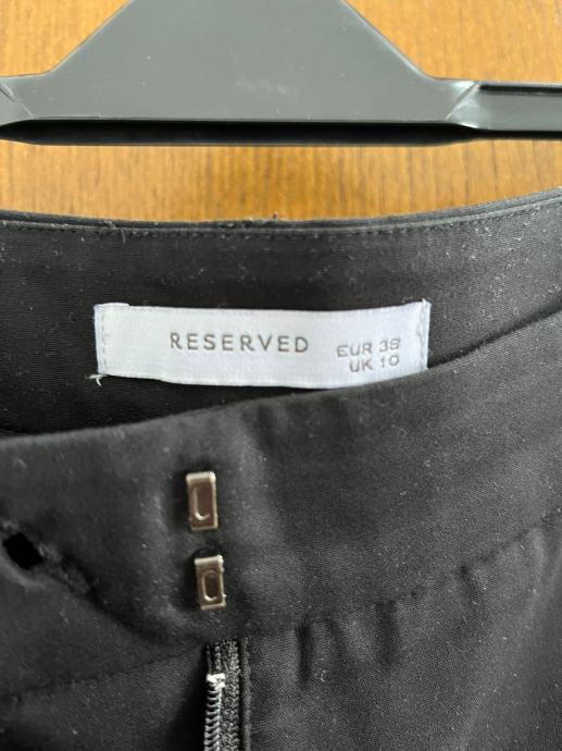 Prodajem crne svečane hlače marke RESERVED, veličina 38. Hlače su par puta nošene, u jako dobrom stanju, bez oštećenja ili tragova nošenja. Klasičan, elegantan kroj – pogodne za poslovne kombinacije ili svečanije prilike. Ugodne za nošenje i lako se kombiniraju.