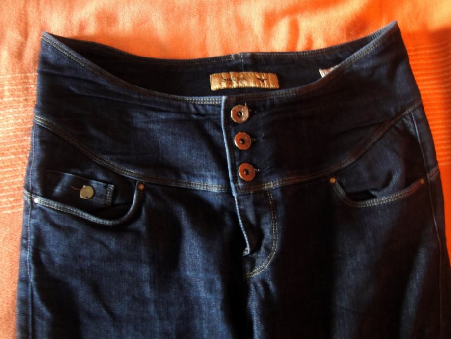Novo, samo oprano, tamnoplave ženske traperice ravni kroj nogavica, s oblikovanim strukom - vizualno sužavaju i imaju efekt steznika.