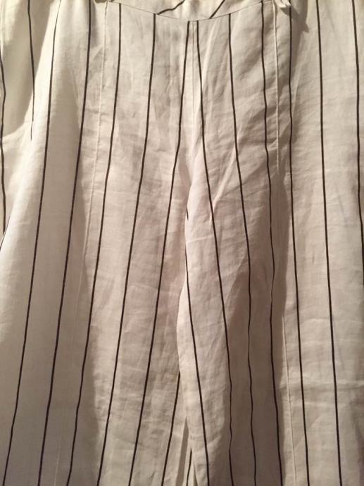 BRODWAY original nove bijele široke hlače na pruge...ramie 100%...ugodan materijal pogodan za ljeto..kvalitetniji ,mix lana i pamuka...lagani sjaj karakterističan za ramie lan....oversized kroj nogavica poput culotte suknja hlača....vel.S/M ..po deklaraciji M.....