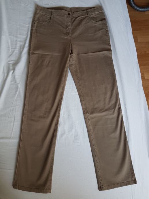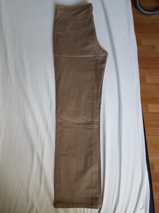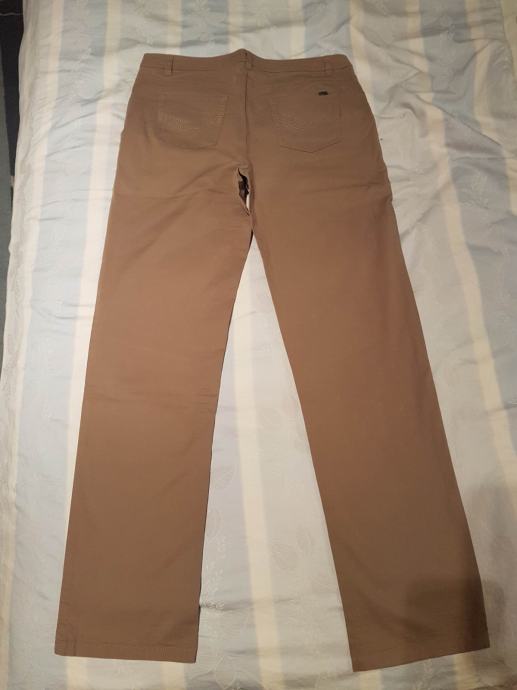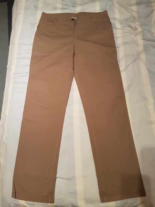 Hlače svijetlosmeđe boje, pamučne, srednje debljine, udobne. Veličina 40 (L). Malo nošene, očuvane. Slikano s blicem i bez.