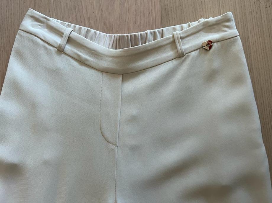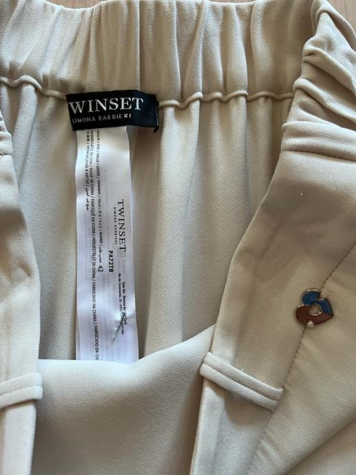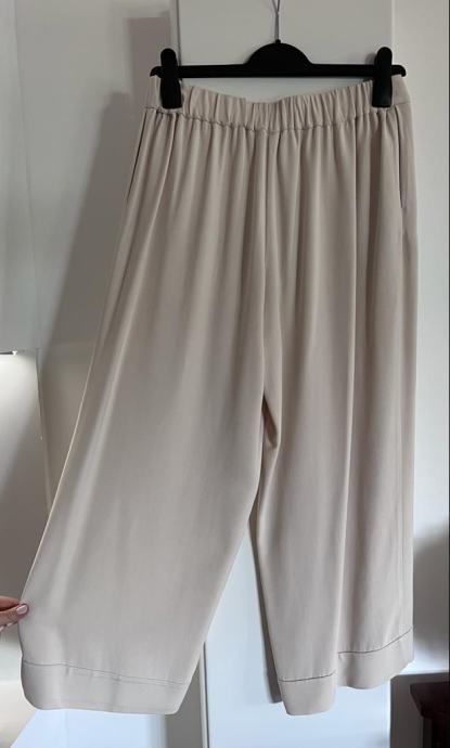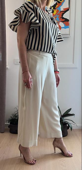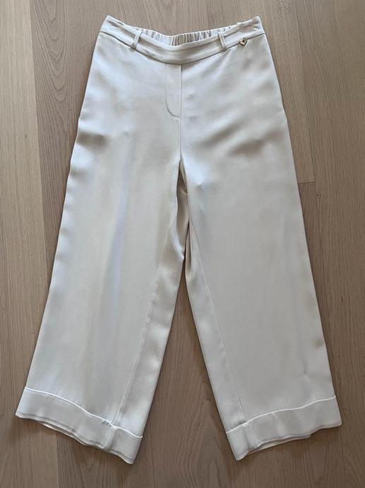 TWINSET bijelo bež hlače užeg dijela oko pasice, a nogavice se šire (nešto poput culottes).