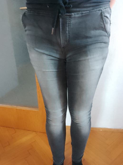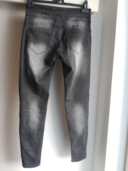 Udobne tamnosive skinny traperice tajice v. M (36/38-38). malo nošene i kao nove osim sitnih crtica na nogavicama pri dnu (jedva vidljivo na trećoj slici). isprani look. Za svaki dan, casual stil. 3.5 e + pt