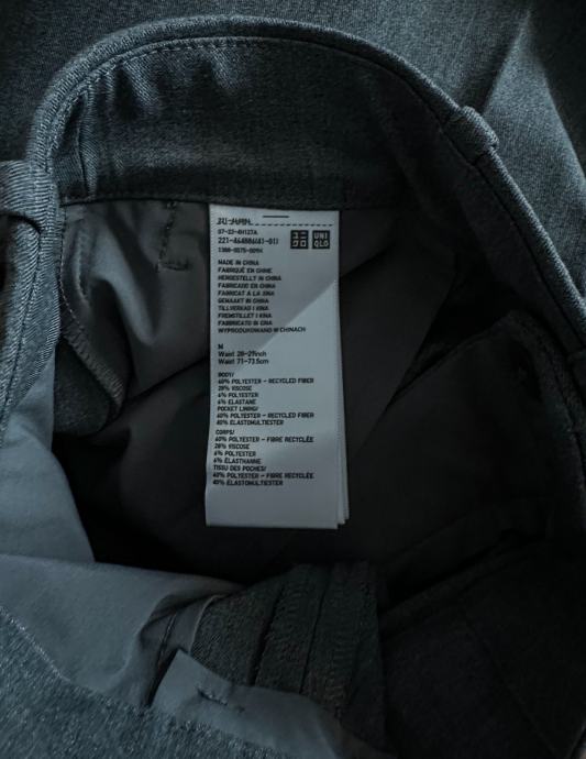 Sastav - viskoza, poliester, elastin. Deklarirano M, mjere: struk 37-39 cm, dužina 105 cm, nogavica iz prepona 72 cm.