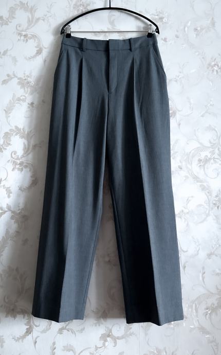 Nove sive hlače na crtu, viši struk, široke nogavice.