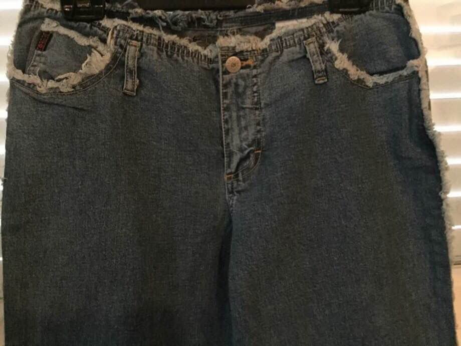 MUDD by SAD...Efektne traperice “čupavih”rubova...lagani trapez kroj...mekane i ugodne...vel.38-40-42.....nenošene...slika s neta sličnog modela(rubova) Springfield kolekcije.....