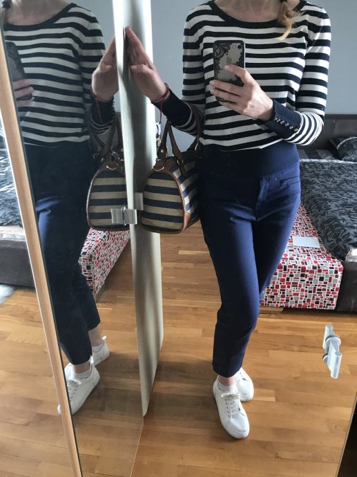 Zara chino hlače na crtu koje su unikatno napravljene,skinuta im je pasica i ušivena široka guma tako da su efektne i posebne i ujedno unikatne