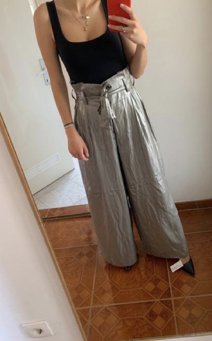 Predivne, široke Zara hlače, nove ,niti 1 nosene,vel 38...srebrne,plaćene 300 kn...lagane lijepo padaju