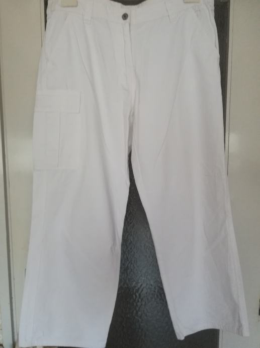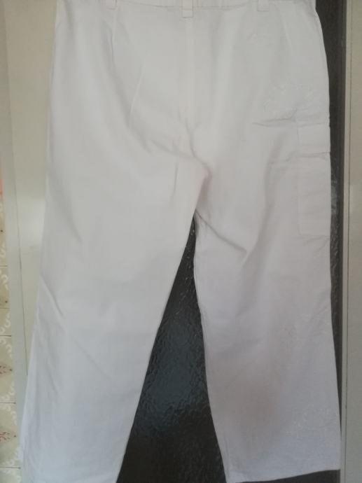 Ženske hlače bijele boje, od čvrstog platna s vezenim ukrasima sa strane u istoj boji, veličina 42-44, nenošene